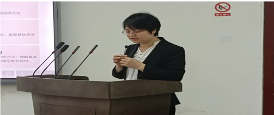 竞赛结束后,刘汝荣院长对赛事活动进行了深入而精彩的点评。她结合五位参赛老师的数字化教学成果指出现代数字化对教学的重要性。随着人工智能与大数据等技术的不断变革,时代要求我们必须打破传统的以知识传授为主的教学课堂,教师要充分利用数字化工具与资源改革课堂教学,体现时空突破,增强教学效果;能合理运用智慧教育环境中的人工智能、数据分析技术引导控制学习进程,有效调动学生自主学习与协作探究的积极性,进而全面提升教师教学综合能力,提升人才培养质量。2020年学校教务处也下发过通知要求所有专业课必须建立完整的网络课程,实行线上线下相结合的教学模式。今天参加比赛的五位老师走在了前面,他们主讲的课程均获批立项省级线上线下混合式一流课程。今天是同场竞技,更是我们外语人相聚一堂分享现代化的教学经验、探索高科技含量教学手段的大盛会。最后刘院长代表学院对参与此次竞赛活动的全体老师表示感谢。