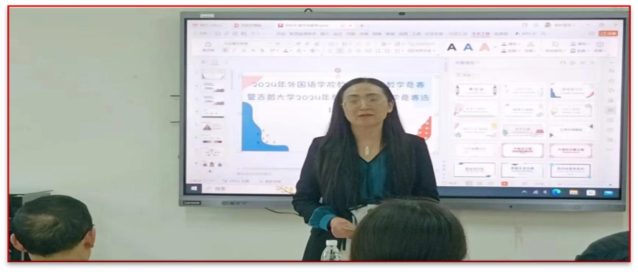 本次比赛严格按校赛要求、内容、程序进行。竞赛时长为 12 分钟,竞赛包括两个环节:①介绍课程数字化教学设计、数字化资源建设与应用;②某知识点的现场教学展示。竞赛采取现场抽签决定参赛顺序,评委现场评审的形式。由评委专家根据校赛评分细则对参赛教师以上两个环节的展示进行评审!评出 2024年教师数字化教学竞赛等级名次,并在全院公示无异议后,给予院内表彰和奖励。并按学校文件要求在院级选拔赛成绩的基础上,推荐苏根英老师参加学校数字化教学竞赛。
