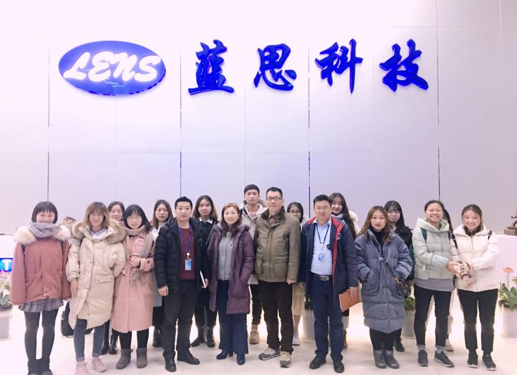 12月15日下午,由蒋林平老师带队的吉首大学见习团队抵达蓝思科技集团开展一系列考察活动。在蓝思科技公司业务部副总黄争艳、人力资源部高级总监宋坚冰的陪同下参观了蓝思科技公司总部科技产品英汉双语展厅,了解其企业文化。随后,在集团工作人员的陪同下,于总部二楼开展了座谈会,会上,人力资源部高级总监宋坚冰致欢迎词,对 见习团队的到来表示热烈欢迎,紧接着,业务部副总黄总介绍了蓝思集团的发展现状及外语人才规格要求,最后, 见习负责人发言,就校企合作,学生实习进行了讨论并交流了意见。座谈会结束后,双方合影留念。