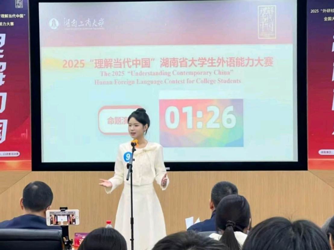 本网讯(通讯员 罗一优)10月26日,由湖南省教育厅主办,湖南工商大学承办的2025“外研社·国才杯”“理解当代中国”大学生英语能力大赛湖南赛区选拔赛在长沙落幕。吉首大学代表队摘取个人金奖2项,银奖2项,铜奖4项,并斩获团体铜奖,为学校赢得了荣誉。