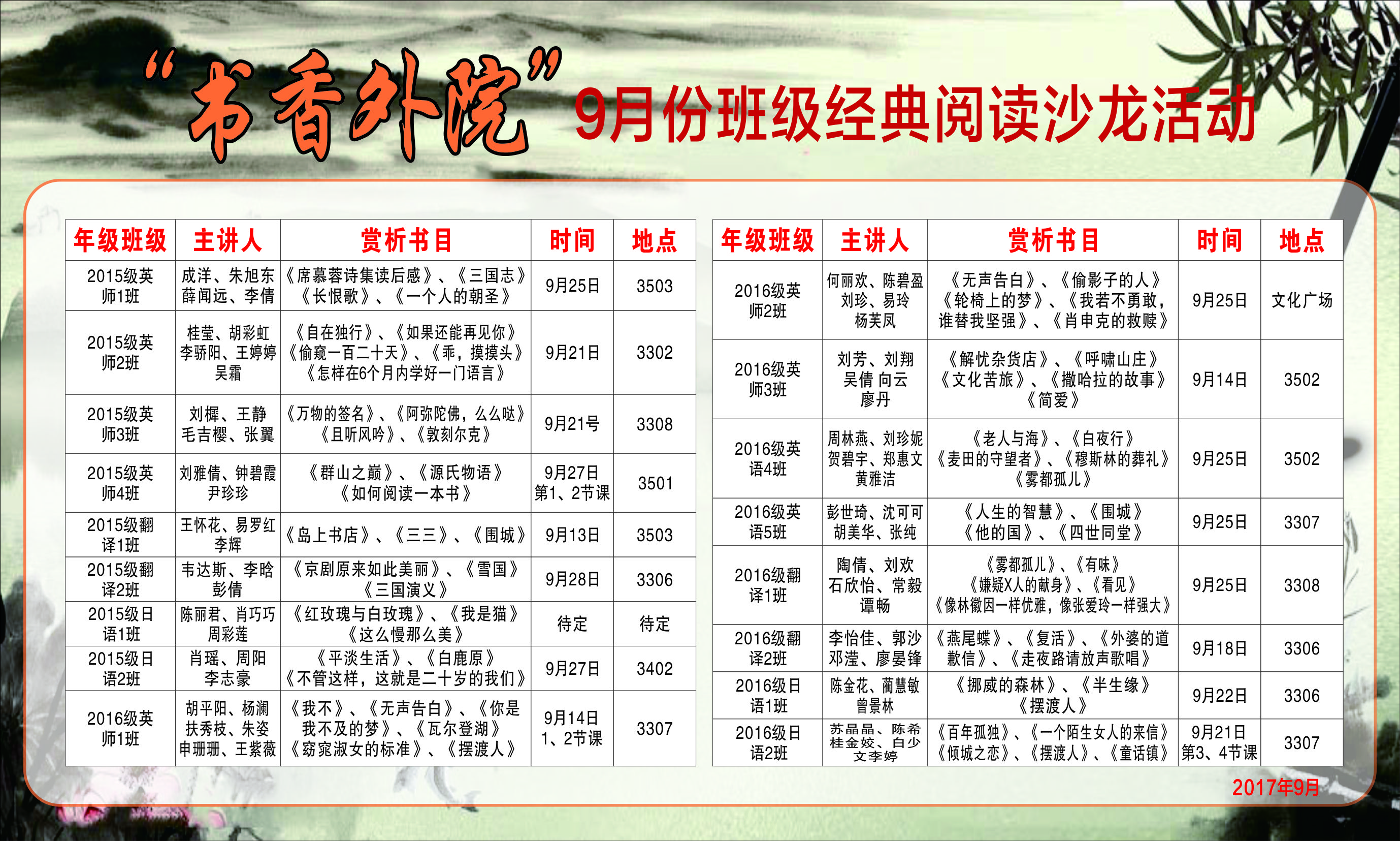 9月份书香人生•经典阅读沙龙活动