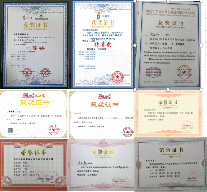 近年来,各专业学生获师范技能大赛国家级特等奖、电子商务“三创赛”国家级二等奖、全国口译大赛二等奖等国家级、省级学科竞赛奖励近百项。主持国家级“大学生研究性学习与创新性实验项目”20余项。参加语言服务1000余人次。专业四、八级考试合格率超过全国综合性大学平均合格率10余个百分点。