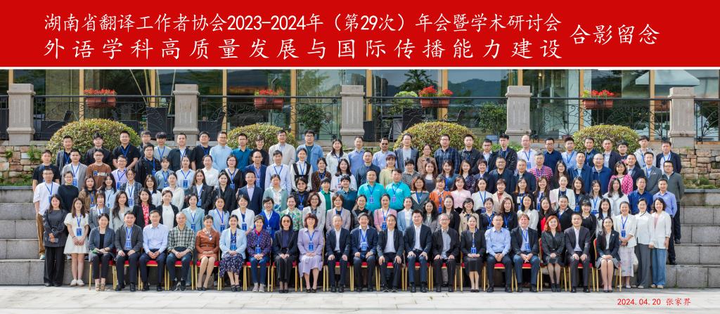 本网讯(通讯员修伟)4月19日-20日,由湖南省翻译工作者协会主办,我院承办的省译协第29次年会暨学术研讨会在吉首大学张家界校区举行,全省翻译工作者协会会员单位、中国翻译协会、《中国翻译》编辑部以及近10余所外省地方及军队院校、学术机构300余位专家学者及研究生与会。