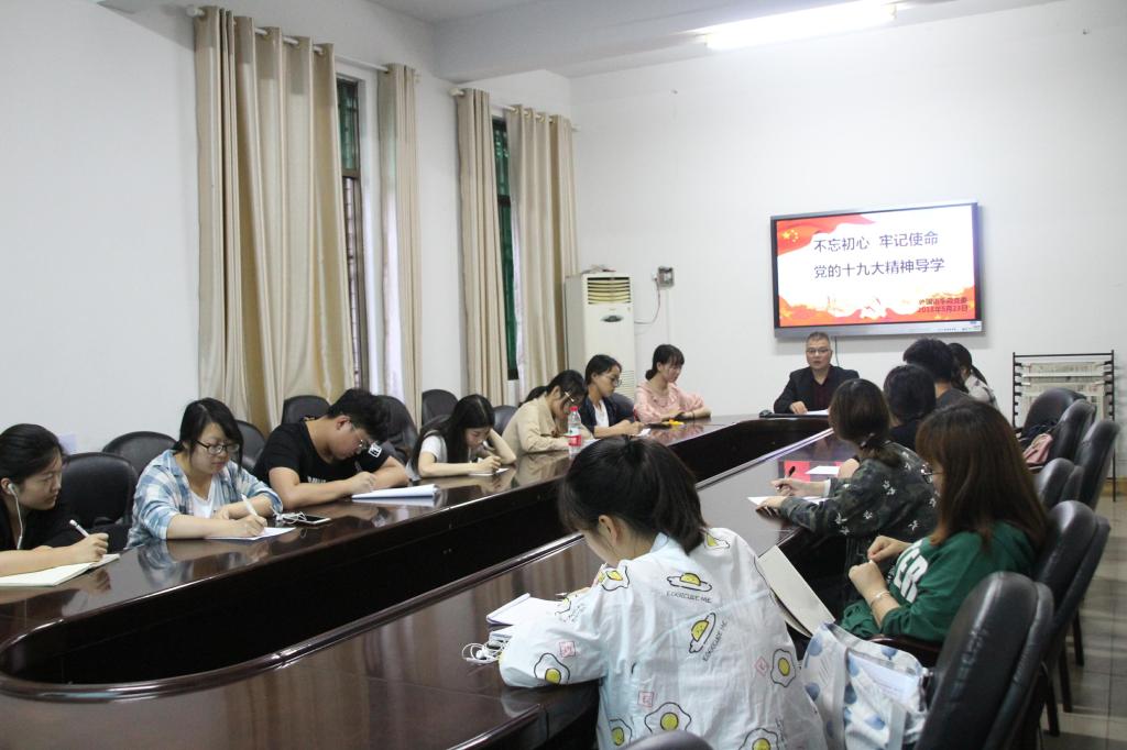 本网讯(陈琳 刘宁霞 郑惠文)为深入学习贯彻党的十九大精神, 5月23日晚,学院党委在院会议室举行了不忘初心、牢记使命、党的十九大精神视频导学。视频来源于湖南省干部教育培训网络学院课程资料,本次导学由学院党委副书记谈宗凡主持,参加本次导学的有全体学生党员和建党对象。