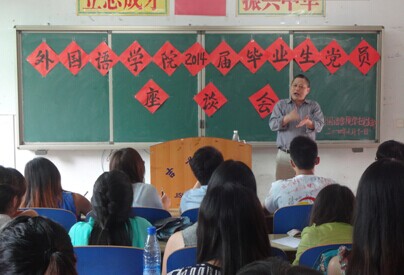 本次教育座谈由刘宗湘书记主讲,刘书记深入浅出的从做人、做事、学习三个方面开启了教育座谈。第一,做人方面,刘书记要求毕业生党员走上工作岗位之后,要脚踏实地,做人要实、要诚、要真。按照习近平总书记所说的坚决按照“三严三实”的要求严格要求自己,真正做到“严以修身、严以用权、严于律己;做人要实、谋事要实、创业要实。”第二,做事方面,刘书记要求毕业生党员学会实事求是,做事要实,要实干、苦干、巧干。第三,学习方面,刘书记要求毕业生党员还要学会学习,终身学习,不仅业务上要加强学习,走上工作岗位之后为人处世的方方面面也要加强学习。在座谈会当中,刘书记还与我院2014届毕业生党员顺利考上选调生、公务员的学生无私的分享了他的宝贵经验。让他们在今后的工作中少走弯路,同时寄予了殷切的期望。