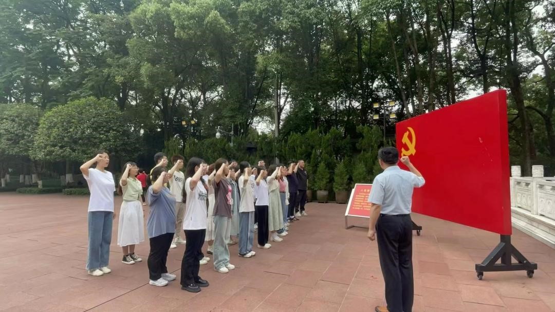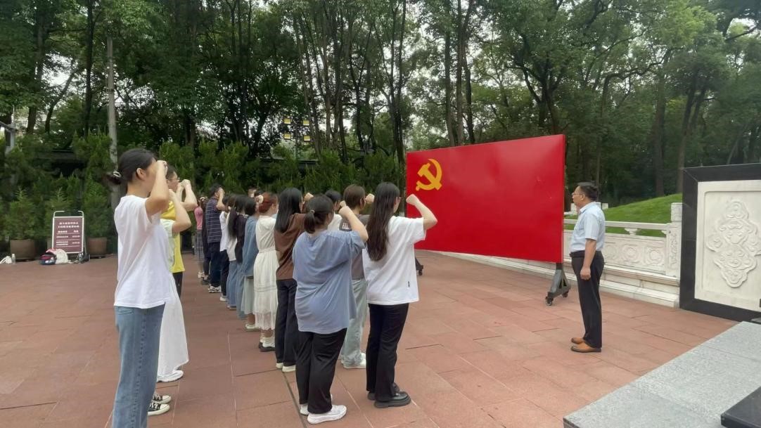 在重庆歌乐山白公馆、渣滓洞看守所旧址等处,大家聆听讲解、观看展板,一张张照片,一段段文字,栩栩如生地呈现了当年共产党人被关押时所受的折磨,所做的不懈抗争,无声地痛诉着国民党反动派对于革命先烈的惨无人道的迫害。这场解放前惨绝人寰的大屠杀令大家感到痛彻心扉的愤怒与悲痛。参访团在歌乐山烈士陵园纪念碑广场,重温入党誓词。