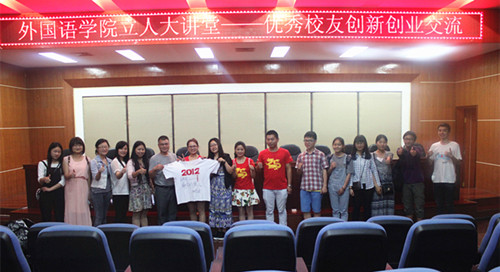 立人大讲堂系列之二优秀校友创新创业交流于5月18日晚7点在逸夫楼多功能报告厅举行,主讲人为我院校友周文,党总支副书记谈宗凡老师主持讲座。
