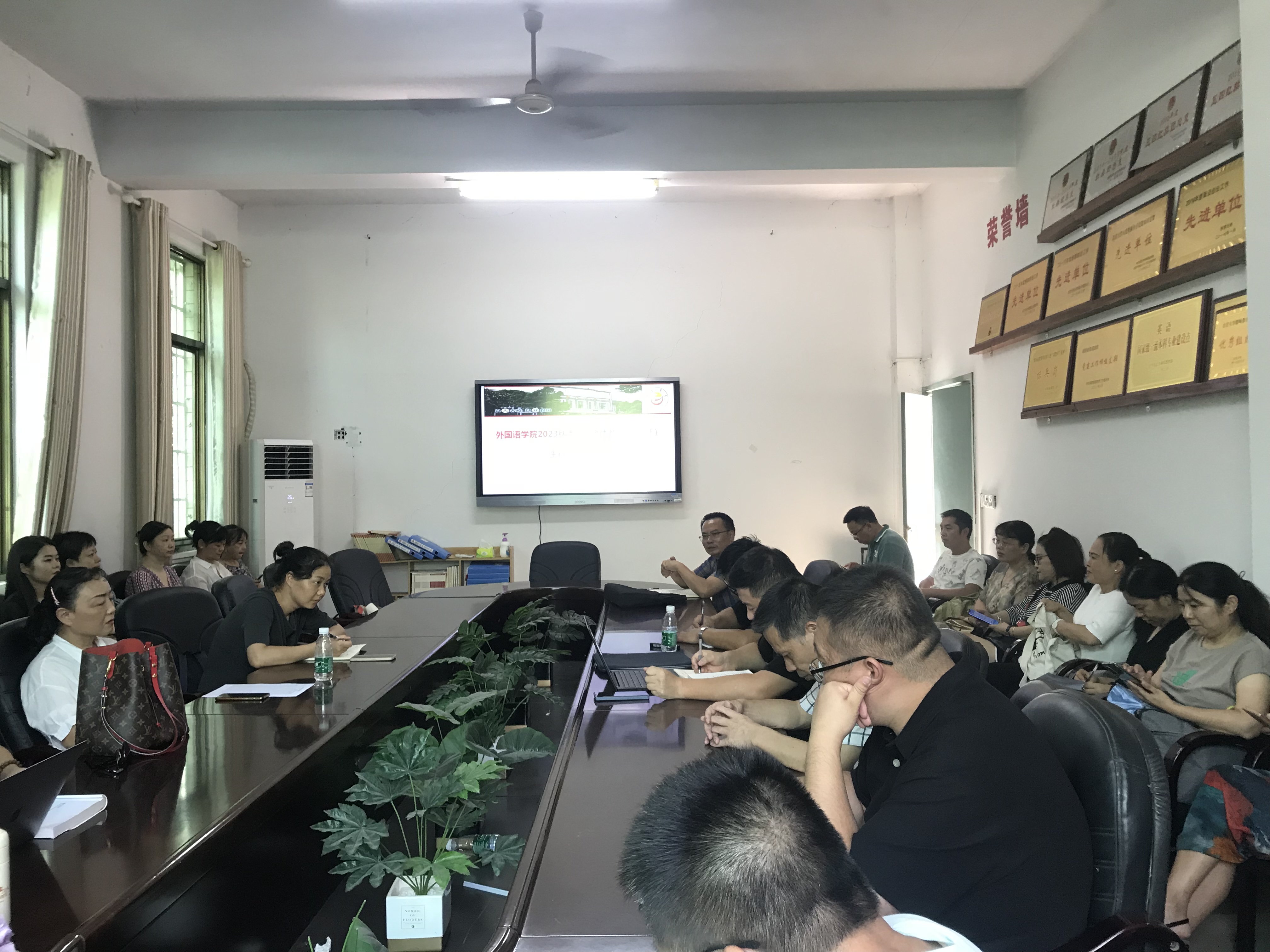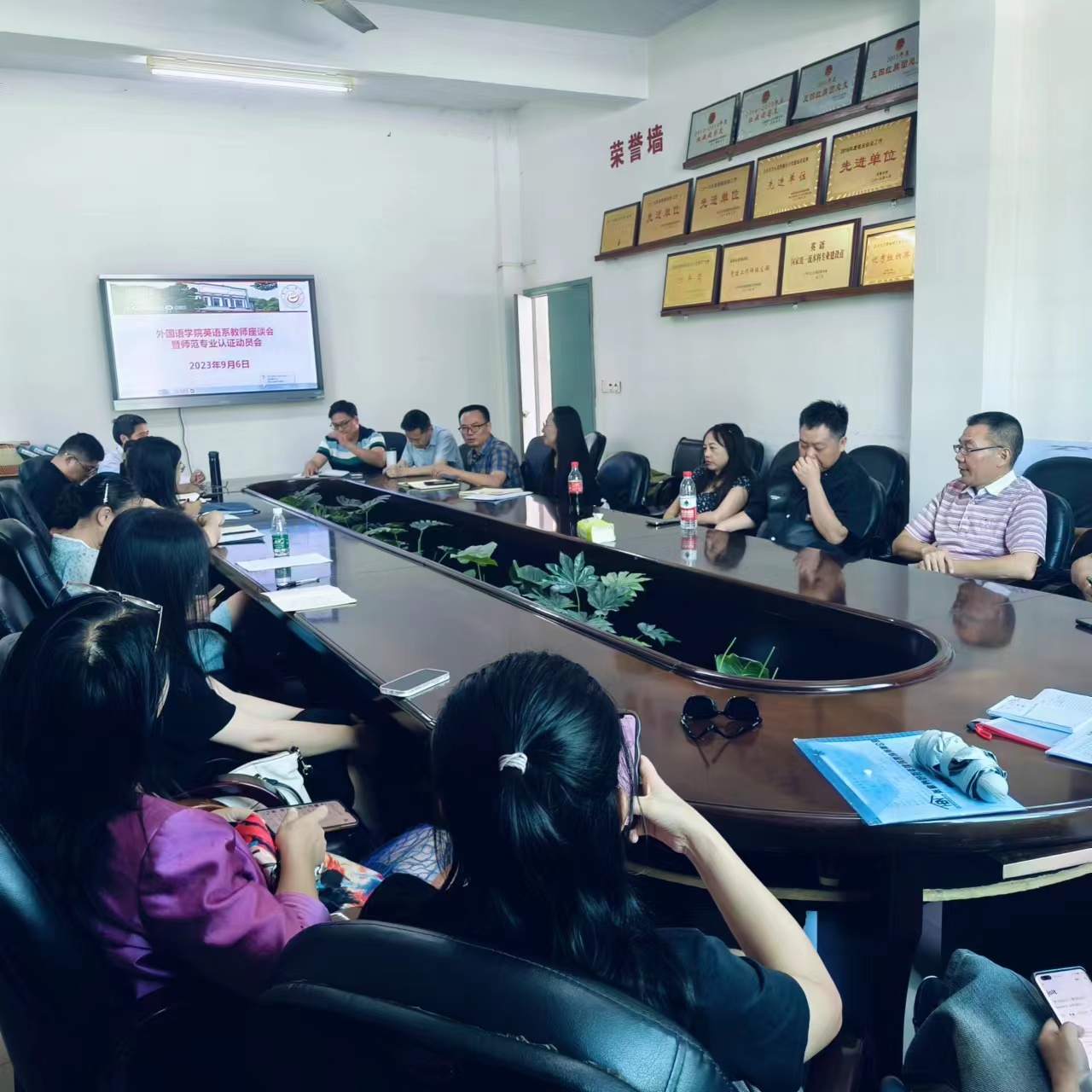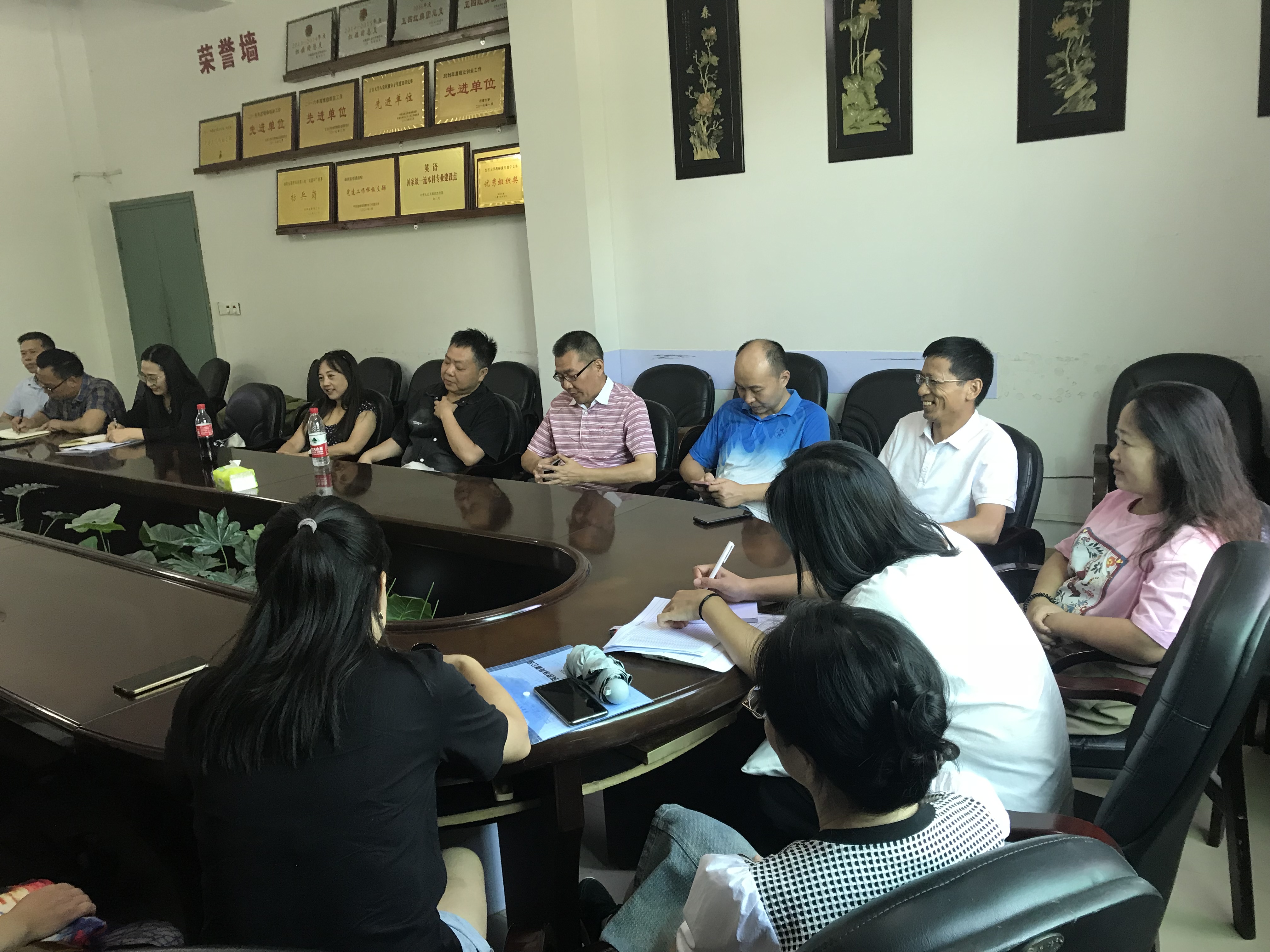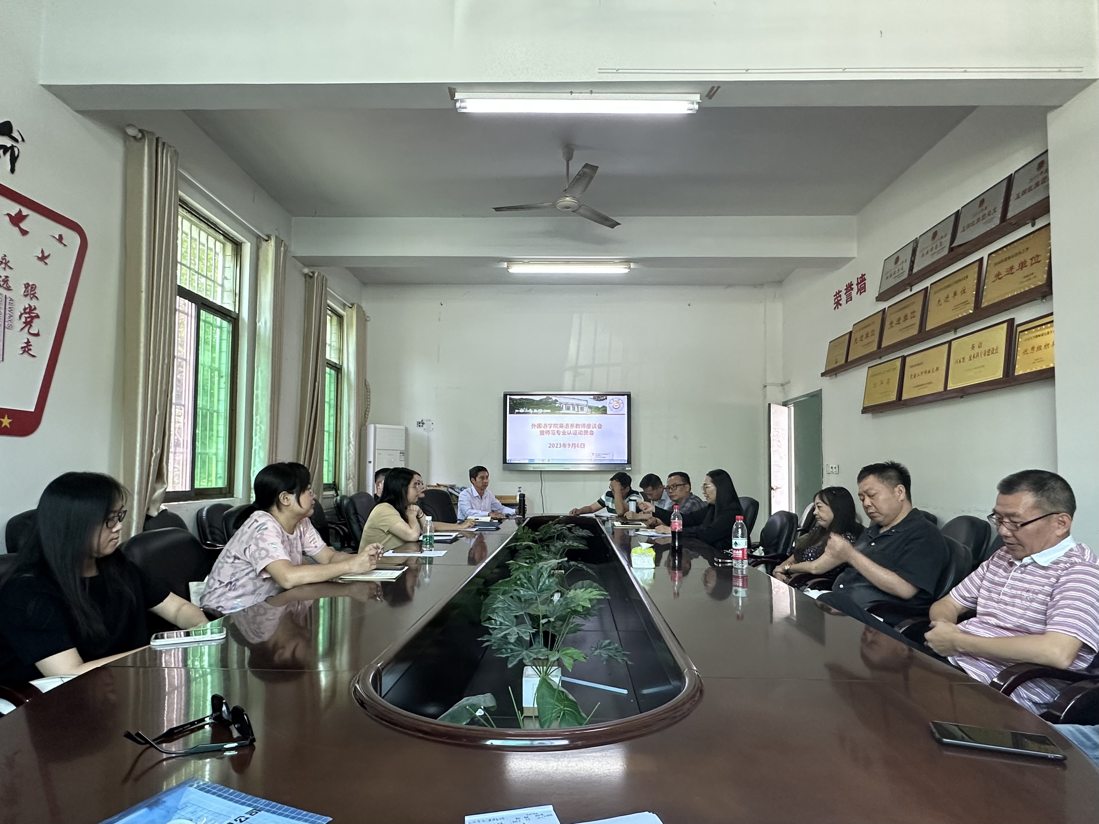 9月6日下午3点在学院张家界校区逸夫楼3214会议室,学院院长刘汝荣、党委书记简功友、副院长唐小田组织英语系全体教师座谈,就国家一流本科专业建设点英语专业年度建设计划落实、重点工作完成情况,下一阶段建设面临的困难和问题,解决对策等展开交流。会议以年度招生就业情况为切入点,分析了招生就业反映公众对外语类专业认识的误区,传导了招生所带来的专业建设和就业压力。会议结合国家一流本科专业建设要求,讨论了专业招生、就业、师范类专业认证、课程建设、教学管理队伍建设的提质增效,对标对表找短板、查问题、明思路、谈举措。