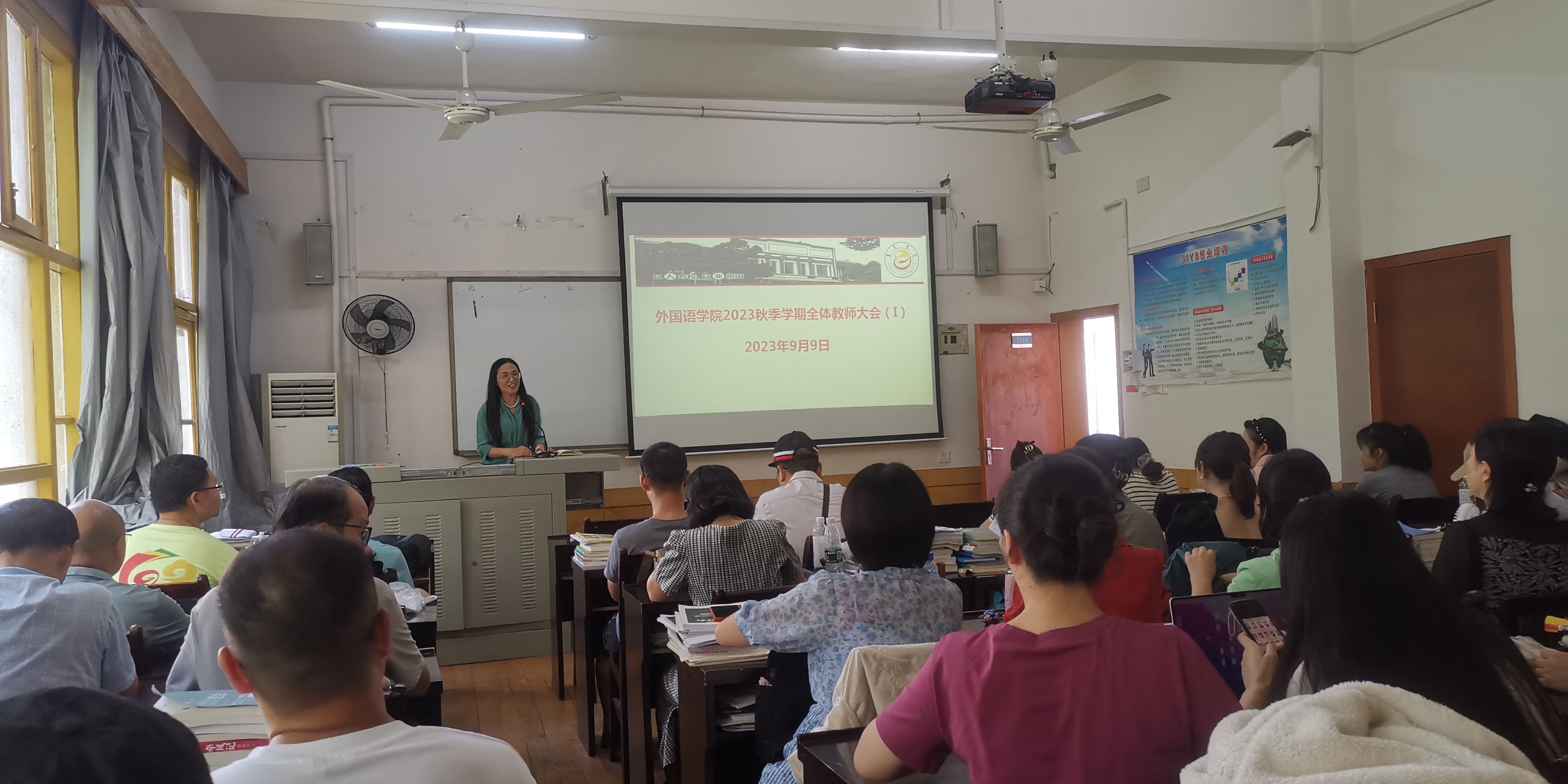 9月9日下午,学院分校区召开新学期第一次会议,院长刘汝荣主持吉首校区会议,党委书记简功友主持张家界校区会议。会议传达了学校2023年秋季开学工作大会精神,明确了学期重点工作,会议重点任务是作英语师范类专业认证动员,院长助理修伟以《师范类专业认证是什么,一线教师如何做》为题做师范类专业认证动员报告。