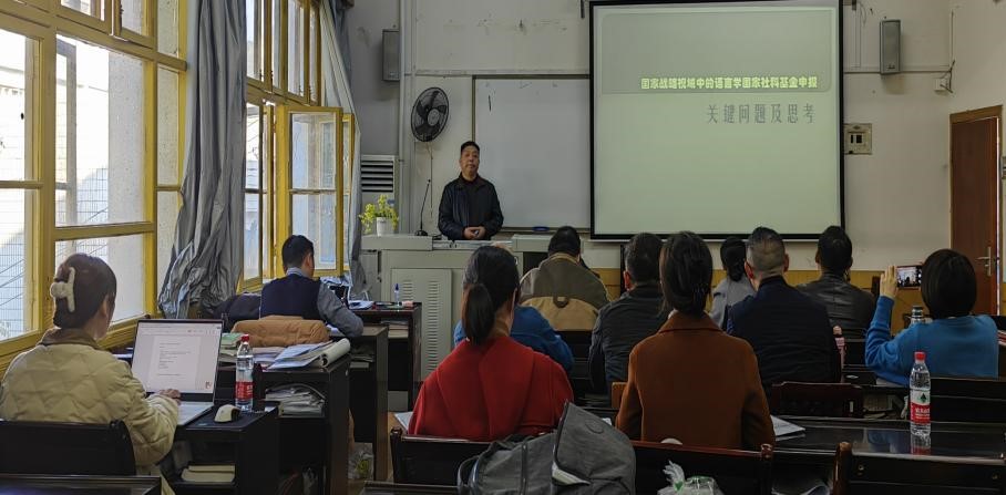 夏宁满博士讲座主题为“国家战略视域中的语言学国家社科基金申报:关键问题及思考”。