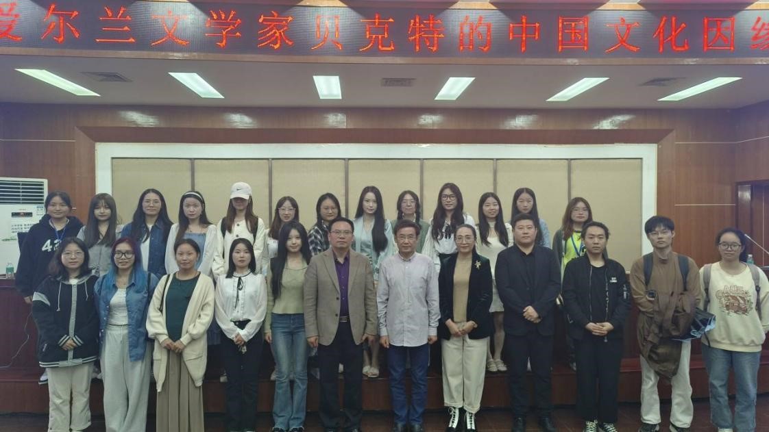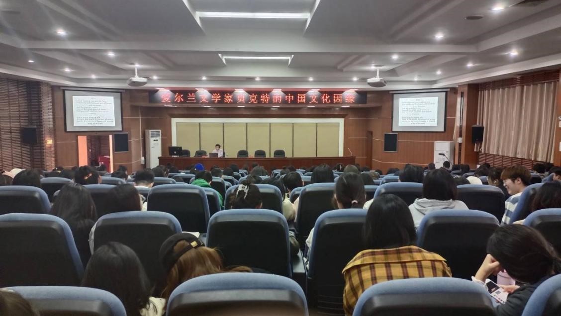 本网讯(通讯员 游馨 姜晓鸥 段沁熊)2023年10月8日,上海外国语大学文学研究院副院长、博士生导师张和龙教授莅临“界顶论坛”,于我院逸夫楼多功能报告厅举行“爱尔兰文学家贝克特的中国文化因缘”学术讲座。本次讲座由 副院长丁跃斌教授主持。