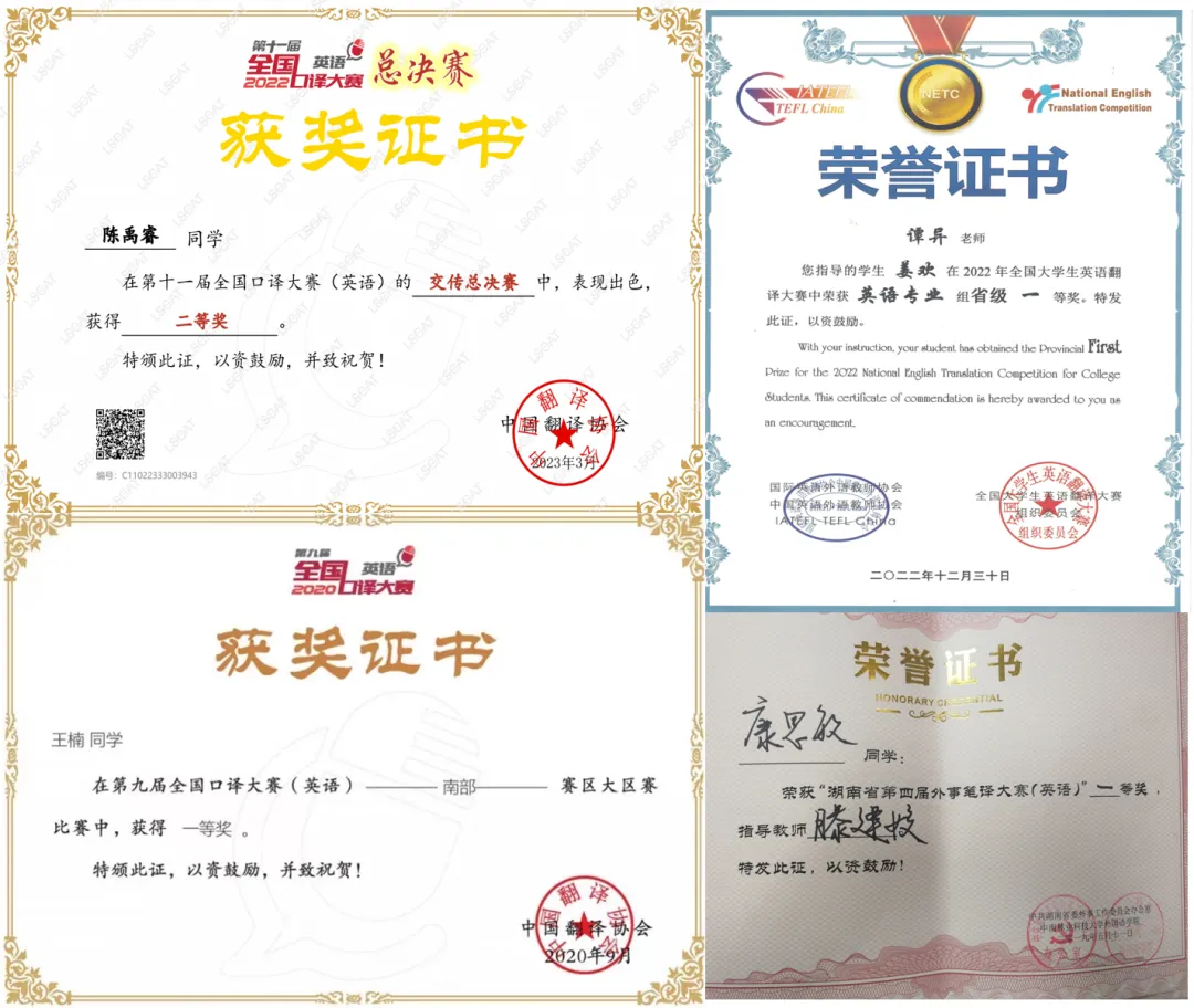 ✦近四年我院英语专业学生获得的部分学科竞赛奖励证书✦